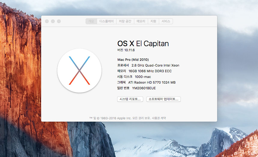 시스템은 엘캐피탄 10.11.6 깔려있습니다